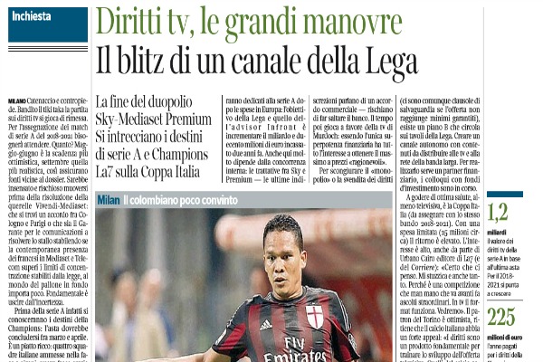 Corriere della Sera: “Ecco come cambia il calcio in tv dal prossimo anno. La fine del duopolio Sky-Mediaset Premium. La7…”