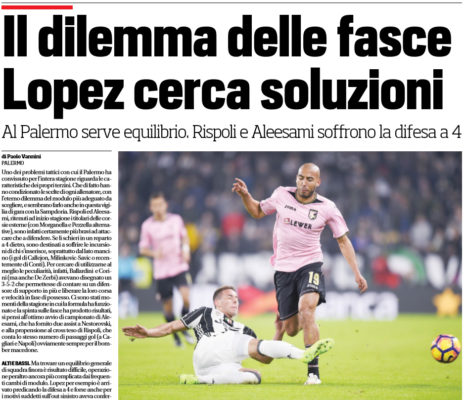 "Uno dei problemi tattici con cui il Palermo ha convissuto per l'intera stagione riguarda le caratteristiche dei propri terzini. Che...