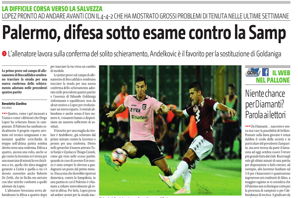 «Samp gara proibitiva? ln questo momento si. Non perché il Palermo affronterà una big del campionato, ma perché in questa...