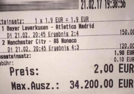 Incredibile storia avvenuta in Germania. Secondo quanto riportato da "Die Welt", uno scommettitore tedesco, Mustafa Celik, aveva puntato 1,90 euro su due...