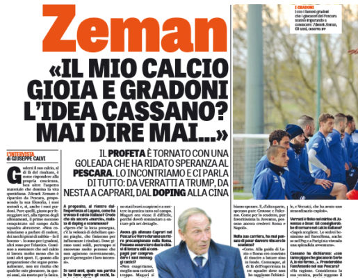 Intervistato da "La Gazzetta dello Sport" il tecnico del Pescara, Zeman, si è così espresso sulla lotta salvezza: «Finché l’aritmetica...