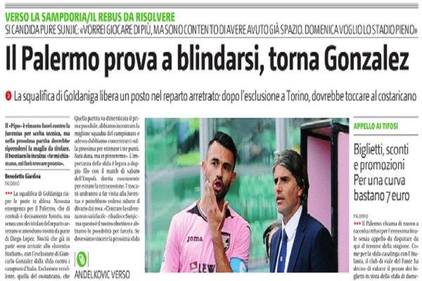 "La squalifica di Goldaniga riapre le porte in difesa. Nessuna emergenza per il Palermo, che di centrali è decisamente fornito,...