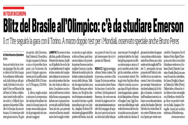 "Sono arrivati in forze: in testa al gruppo Tite, il ct, subito dietro di lui Edu Gaspar, il coordinatore delle...