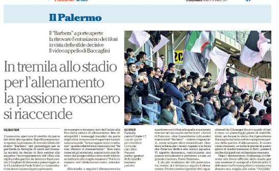 Continua il processo di avvicinamento della città al Palermo Calcio, avviato con l'arrivo del nuovo presidente rosanero Paul Baccaglini. Dopo...