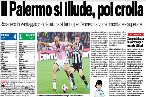 Tuttosport: “Palermo, altra batosta. L’Udinese è devastante”