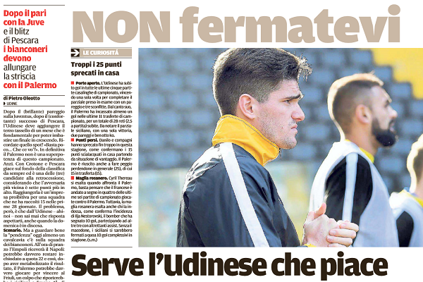 "Dopo il (brillante) pareggio sulla Juventus, dopo il (confortante) successo di Pescara, l’Udinese deve aggiungere il terzo tassello di un...