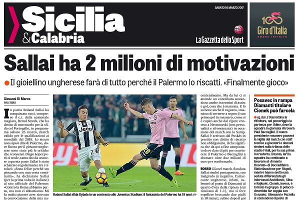 Ma, in rosa, Sallai resta ancora sospeso fra le sue qualità e un rendimento insufficiente. Zamparini l’ha sponsorizzato e Roli...