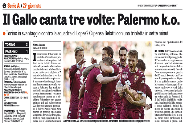"Adesso ci crede davvero. Il Gallo ha alzato tre volte la cresta, tripletta come contro il Bologna, ma questa volta...