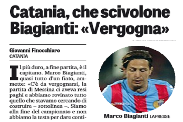 "Il più duro, a fine partita, è il capitano. Marco Biagianti, quasi tutto d’un fiato, ammette: «C’è da vergognarsi, la...