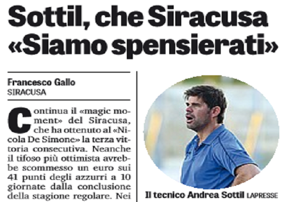 "Continua il «magic moment» del Siracusa, che ha ottenuto al «Nicola De Simone» la terza vittoria consecutiva. Neanche il tifoso...