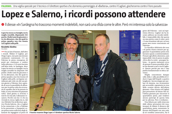 "Da un lato il baratro, dall'altro i ricordi. Sfidare il Cagliari, per Diego Lopez non può non destare sentimenti contrastanti....