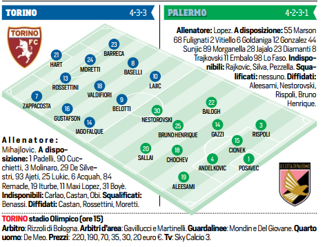 Questo pomeriggio alle ore 15 andrà in scena il match tra Torino e Palermo, sfida valida per la 27^ giornata...