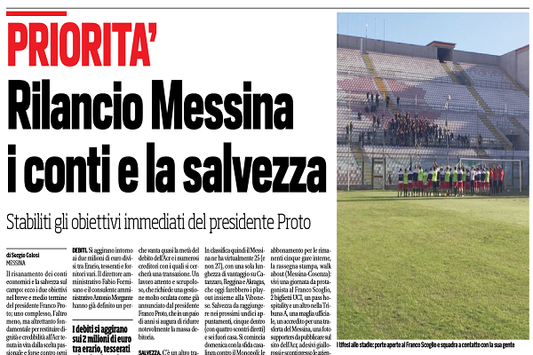 "Il risanamento dei conti economici e la salvezza sul campo: ecco i due obiettivi nel breve e medio termine del...