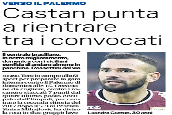 "Toro in campo alla Sisport per preparare la gara interna contro il Palermo di domenica alle 15. Occasione da cogliere,...