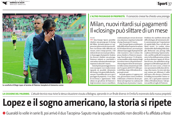 "Diego Lopez e gli americani, la storia si ripete. Nelle ore calde in cui Maurizio Zamparini sta mettendo a posto...