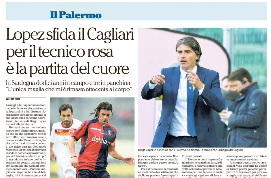 Repubblica: “Lopez sfida il Cagliari, per il tecnico rosa è la partita del cuore. In Sardegna dodici anni in campo e tre in panchina: «L’unica maglia che mi è rimasta attaccata al corpo»”