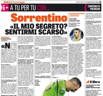 "Insomma, azzardiamo: Palermo è stata una palestra per Sorrentino futuro allenatore. «Da questa esperienza ho imparato che fare l’allenatore è...