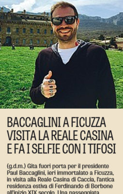 "Gita fuori porta per il presidente Paul Baccaglini, ieri immortalato a Ficuzza, in visita alla Reale Casina di Caccia, l’antica...