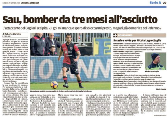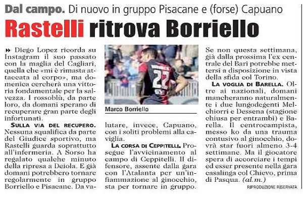 Unione Sarda: “Rastelli ritrova Borriello, da valutare…”