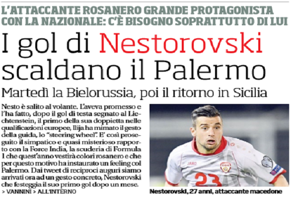 "Nestorovski è salito al volante. L’aveva promesso e l’ha fatto, dopo il gol di testa segnato al Liechtenstein, il primo...