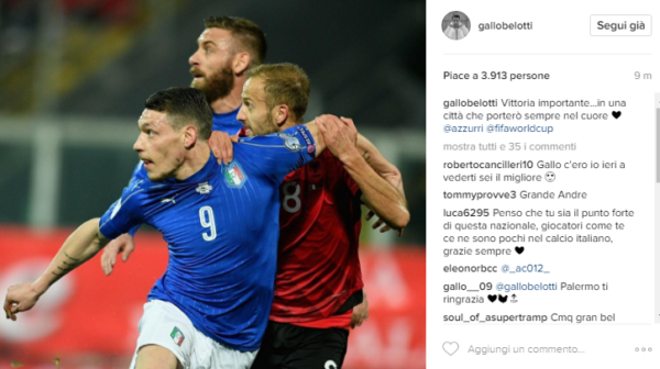 Andrea Belotti, protagonista della gara Italia-Albania di ieri sera, con un post sul proprio profilo Instagram ha voluto salutare la...