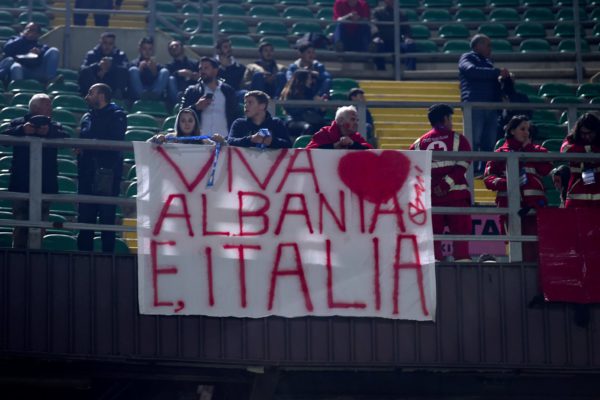 Mentre al "Renzo Barbera" di Palermo si sta giocando Italia-Albania, alcune telecamere sono state incuriosite dallo striscione esposto da alcuni...