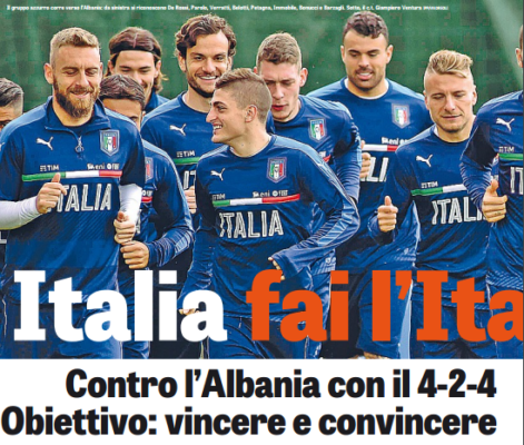 "E finalmente vediamo questo 4-2-4 dall’inizio. Vediamolo contro un’Albania non di primissima categoria, numero 54 del ranking mondiale, ma infinitamente...