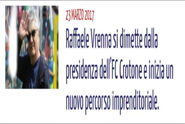 Attraverso una nota sul sito ufficiale del Crotone, Raffaele Vrenna ha rassegnato le proprie dimissioni dalla presidenza del club calabrese....