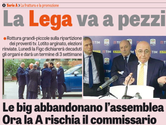 "Spaccatura totale in Lega Calcio. La quarta "puntata" dell'assemblea elettiva della Lega di Serie A, i cui lavori sono stati...