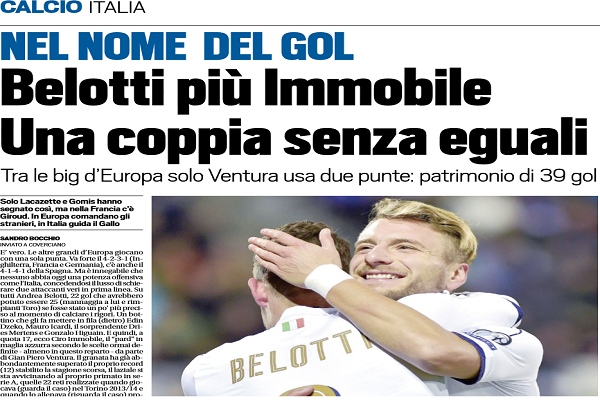 "E’ vero. Le altre grandi d’Europa giocano con una sola punta. Va forte il 4-2-3-1 (Inghilterra, Francia e Germania), c’è...