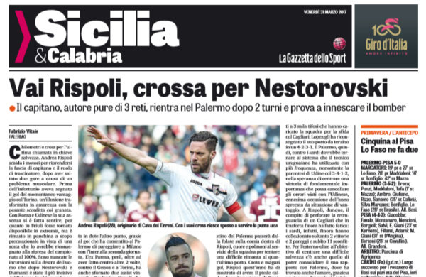 Corriere dello Sport: “Palermo la spinta arriva da tremila tifosi. Ieri al Barbera in tantissimi hanno caricato la squadra per la sfida con il Cagliari”