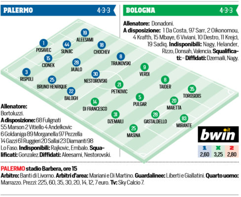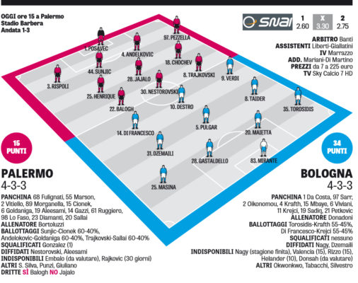 Tuttosport: le probabili formazioni di Palermo-Bologna