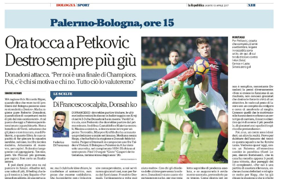 "Ha ragione il ds Riccardo Bigon, quando dice che «non tutti i problemi del Bologna possono essere ricondotti a Destro»....