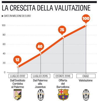 "Il gioco è intrigante. Quanto vale ora Paulo Dybala? Almeno 100 milioni di euro. E se sulla strada per Cardiff...