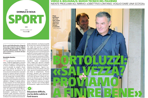 Intervistato da "Il Giornale di Sicilia" Andrea Gasbarroni ha così parlato in merito all'arrivo di Bortoluzzi sulla panchina del Palermo:...