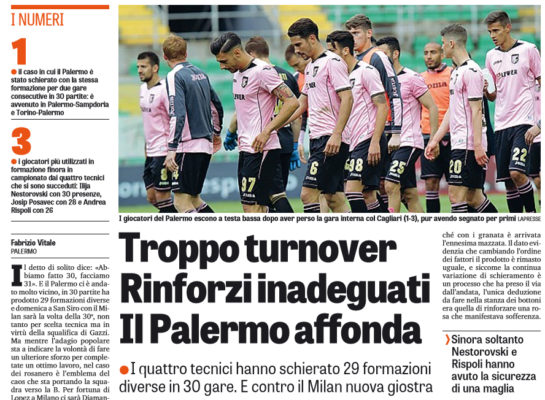 Gazzetta dello Sport: “Troppo turnover e rinforzi inadeguati, il Palermo affonda. E contro il Milan…”
