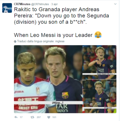 Durante la gara Granada-Barcellona le telecamere hanno ripreso un episodio spiacevole. Il centrocampista dei catalani Ivan Rakitic ha urlato all'avversario...