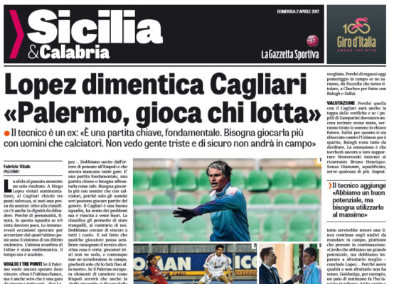 "C'è un Palermo che oggi sul campo si giocherà una grande fetta di salvezza ed un altro che lotta invece...