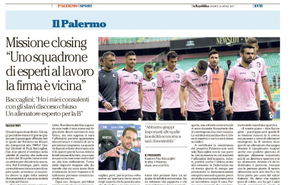 "Ormai è questione di ore. Già oggi potrebbe essere il giorno giusto per il passaggio ufficiale delle quote del Palermo...