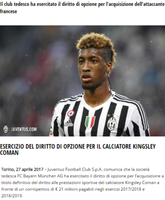 La Juventus annuncia tramite il proprio sito ufficiale la cessione del centrocampista Kinglsey Coman al Bayern Monaco, club in cui...