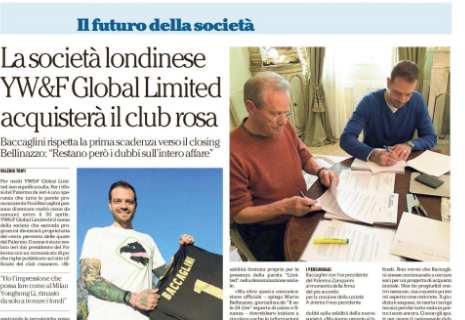 Repubblica: “La società londinese YW&F Global Limited acquisterà il club rosa, Baccaglini rispetta la prima scadenza verso il closing. Bellinazzo: «Restano però i dubbi sull’intero affare»”