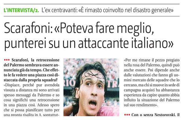Intervenuto ai microfoni de "Il Giornale di Sicilia" l'ex rosanero Lorenzo Scarafoni ha così parlato in merito alla retrocessione del...