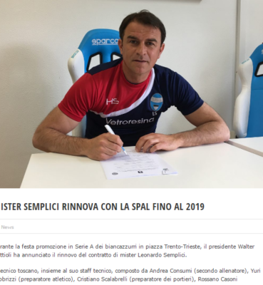 La Spal, club appena promosso in serie A, annuncia di aver rinnovato il contratto fino al 2019 con l'allenatore Leonardo...
