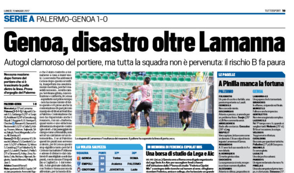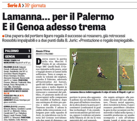 Giornale di Sicilia: “Palermo, un’altra vittoria inutile. Che brutta figura per il Genoa!”