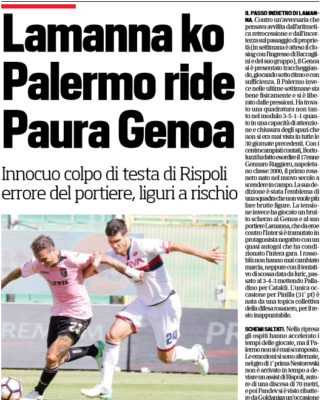 "In faccia ai maligni, il Palermo già condannato riapre di fatto i giochi per la salvezza, battendo un Genoa dall'atteggiamento...