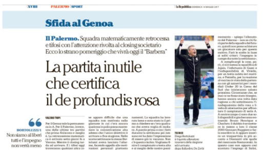 "Per il Genoa vale la permanenza in A. Per il Palermo, invece, una delle ultime tre partite che prima finiscono...