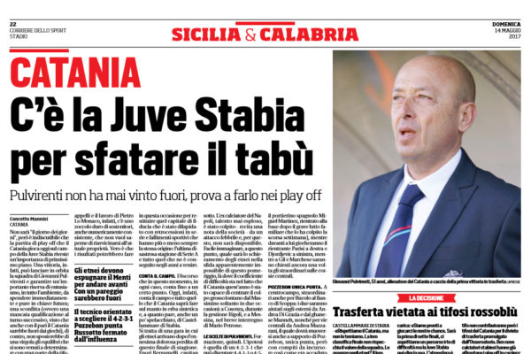 "Non sarà "il giorno dei giorni", però è indiscutibile che la partita di play off che il Catania gioca oggi...
