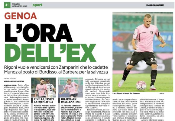 Secolo XIX: “Palermo-Genoa, l’ora dell’ex. Rigoni, Munoz, Hiljemark e Pinilla vogliono vendicarsi con Zamparini perché…”