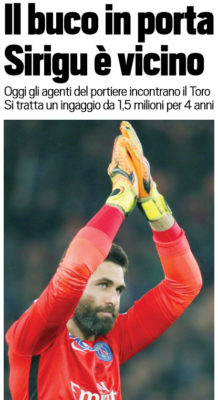 Tuttosport: “Torino, Il buco in porta: Sirigu è vicino. Oggi l’incontro con gli agenti. Si tratta un ingaggio da 1,5 milioni per 4 anni”