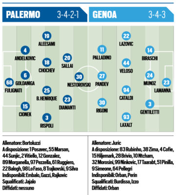 L'edizione odierna di "Tuttosport" ha stilato le probabili formazioni del match in programma domenica alle 15 tra Palermo e Genoa....